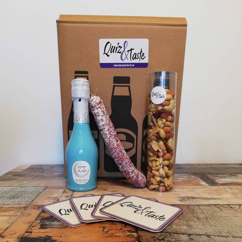 Tijdens de Quiz&Taste geven we een minicursus over de producten uit het pakket: hoe wordt bier/wijn gemaakt, hoe proef je het beste bier of wijn, hoe kies je een goede wijn in een supermarkt, welke druif wordt gebruikt etc. etc. Niet alleen leuk maar ook leerzaam dus!